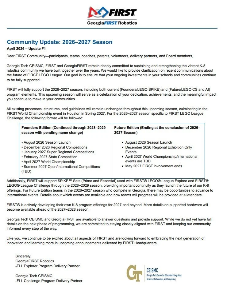 For information about FIRST Lego League Explore and Discover teams in Georgia or to start a new team.